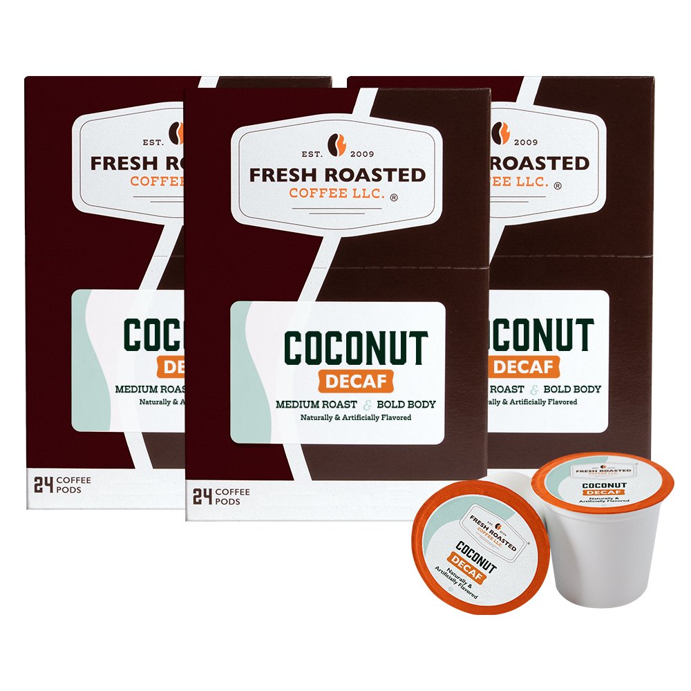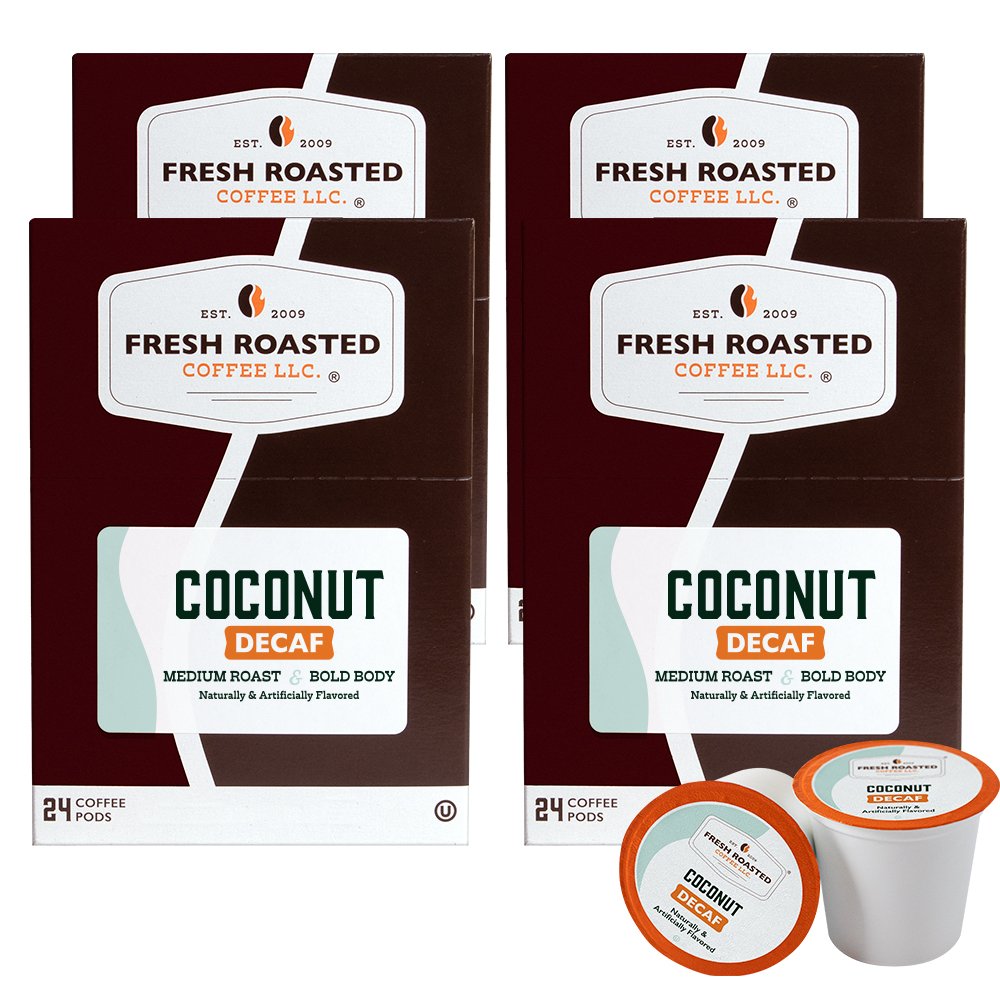 Your favorite Fresh Roasted Coffee flavors now without the caffeine - introducing Decaf Flavored Coffee! Each pod is filled with Fresh Roasted Coffee and Coconut flavor - nothing else. Every variety is sugar-free - plus 99.9% of the caffeine has been removed using a water-based decaffeination process. And just like our regular coffee, each pod is nitrogen-flushed to maximize freshness.