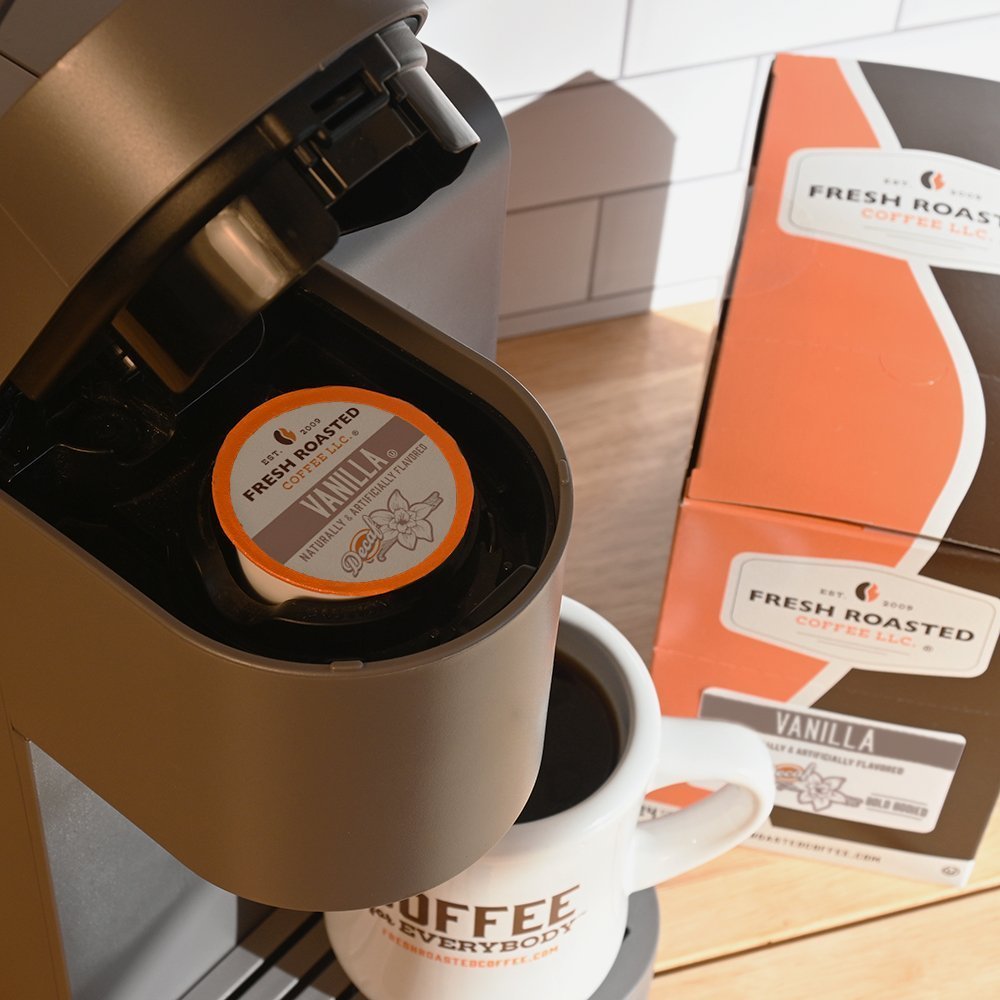 We've taken FRC to the next level of flavor - it's Fresh Roasted Flavored Coffee Pods! Each pod is packed with Fresh Roasted Coffee and our own vanilla flavor - no sugar, no artifical sweeteners. And just like our traditional coffee pods, each one is nitrogen-flushed to maximize freshness. Flavored using natural & artificial flavors.