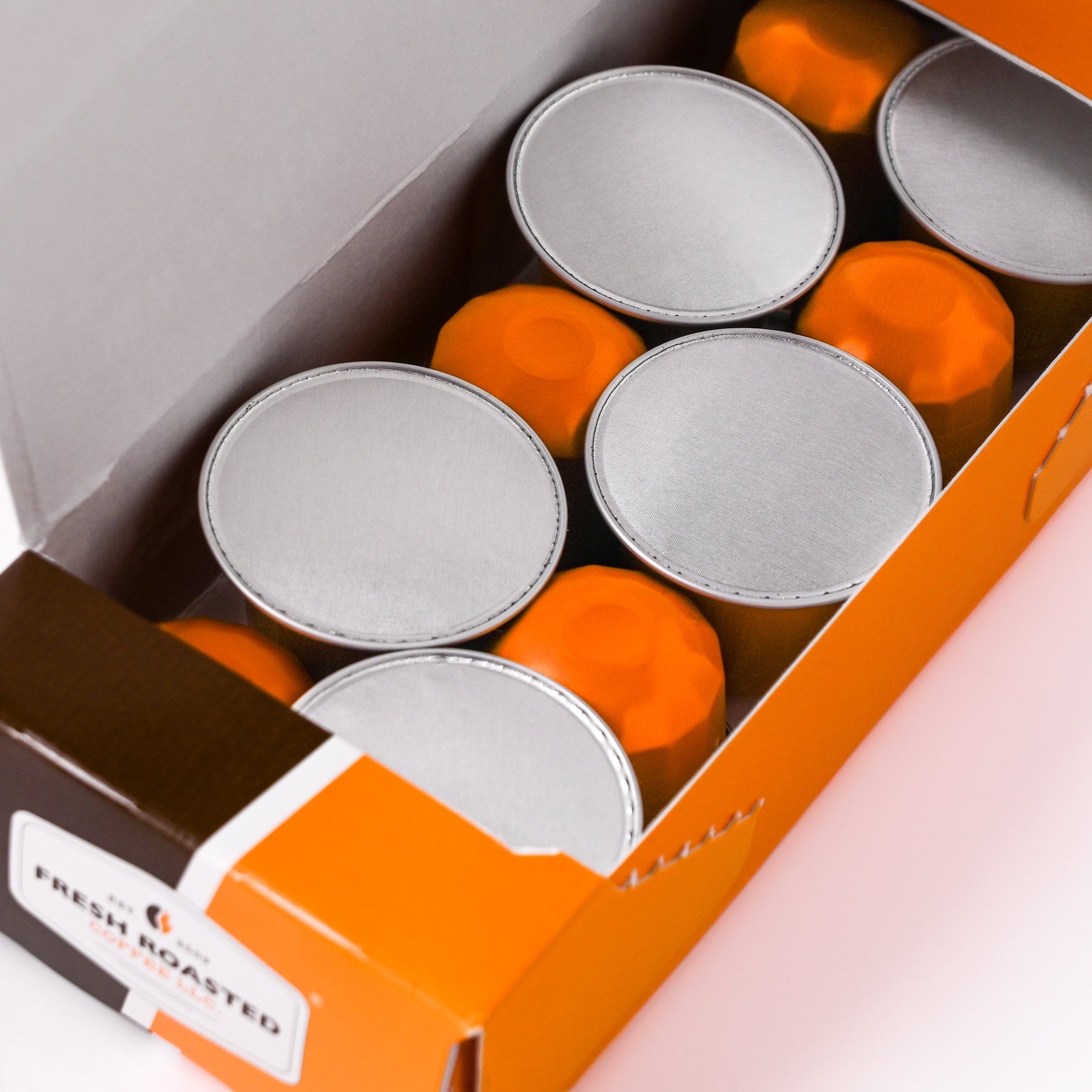 These new & improved Nespresso OriginalLine-compatible aluminum capsules allow all the different coffees in this Italian Craft Espresso Variety Pack to shine. Fresh Roasted Coffee's espresso capsules are delicious whether you're pulling a single shot or making an espresso-based beverage.