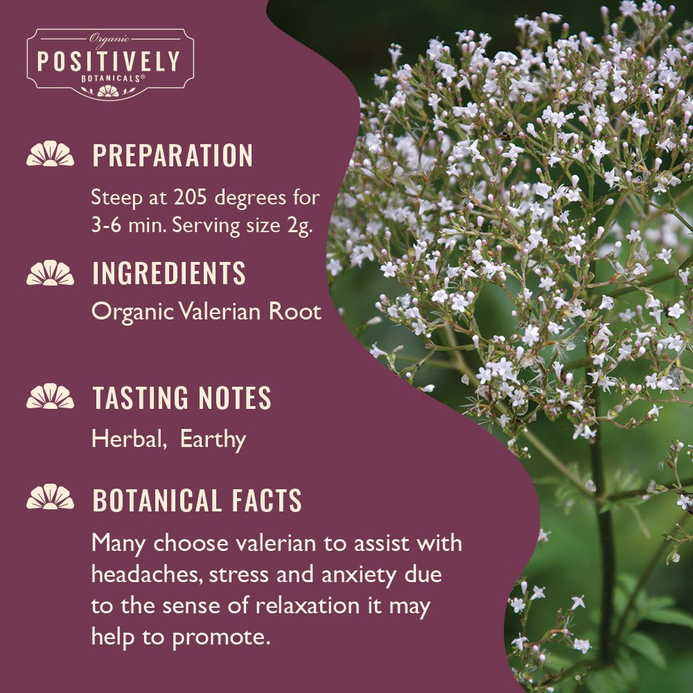While valerian root may be used to get a good night’s rest, it is not advisable to use as a long-term treatment for clinically diagnosed insomnia. For those who do not have diagnosed sleep disorders and are looking for a peaceful night’s sleep, it is best to use valerian root regularly as opposed to as needed* – consistency is key! Since this herbal brew does have a pungent taste and smell, we suggest brewing it with another herbal tea like chamomile or peppermint or using lemon or honey to taste. This product may cause drowsiness, do not use when operating a motor vehicle or operating machinery.