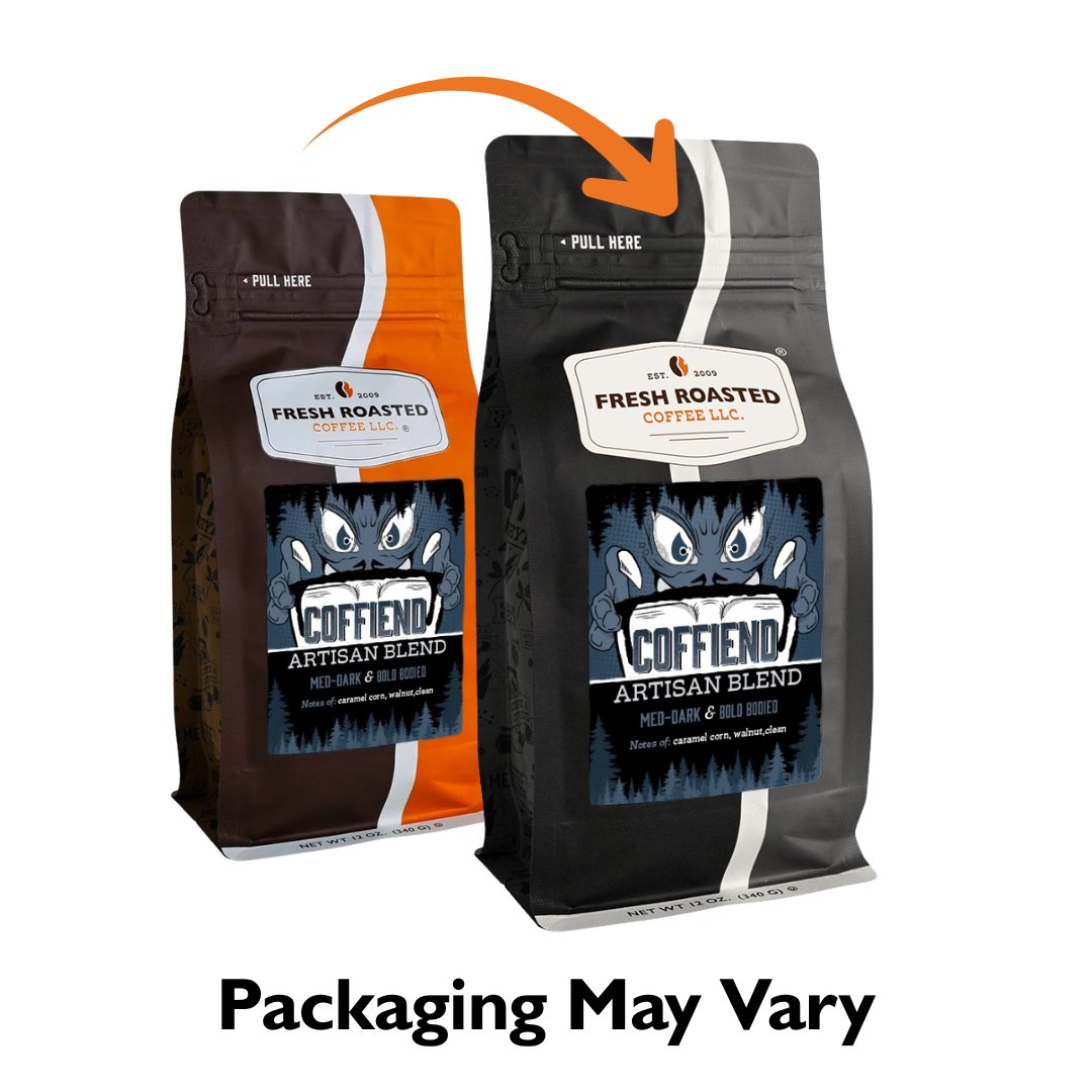 Shape-shifting, furry, fang-toothed beasts have always been a source of fear for many. Here at Fresh Roasted Coffee, not even the most vicious werewolf legend could frighten us away. Weve encountered a beast ten times as ferocious. The Coffiend lurks in the coffee plantations of South America in search of the most delicious coffee on the planet. A full moon means nothing to this beast, but a full cup of coffee? Thats another story. The Coffiend never stops hunting for a piping hot mug of this mythological blend, noted for its deliciously addictive qualities. Some say that copious cups of this stuff will make you hairier, scarier even...but thats the stuff of legends.