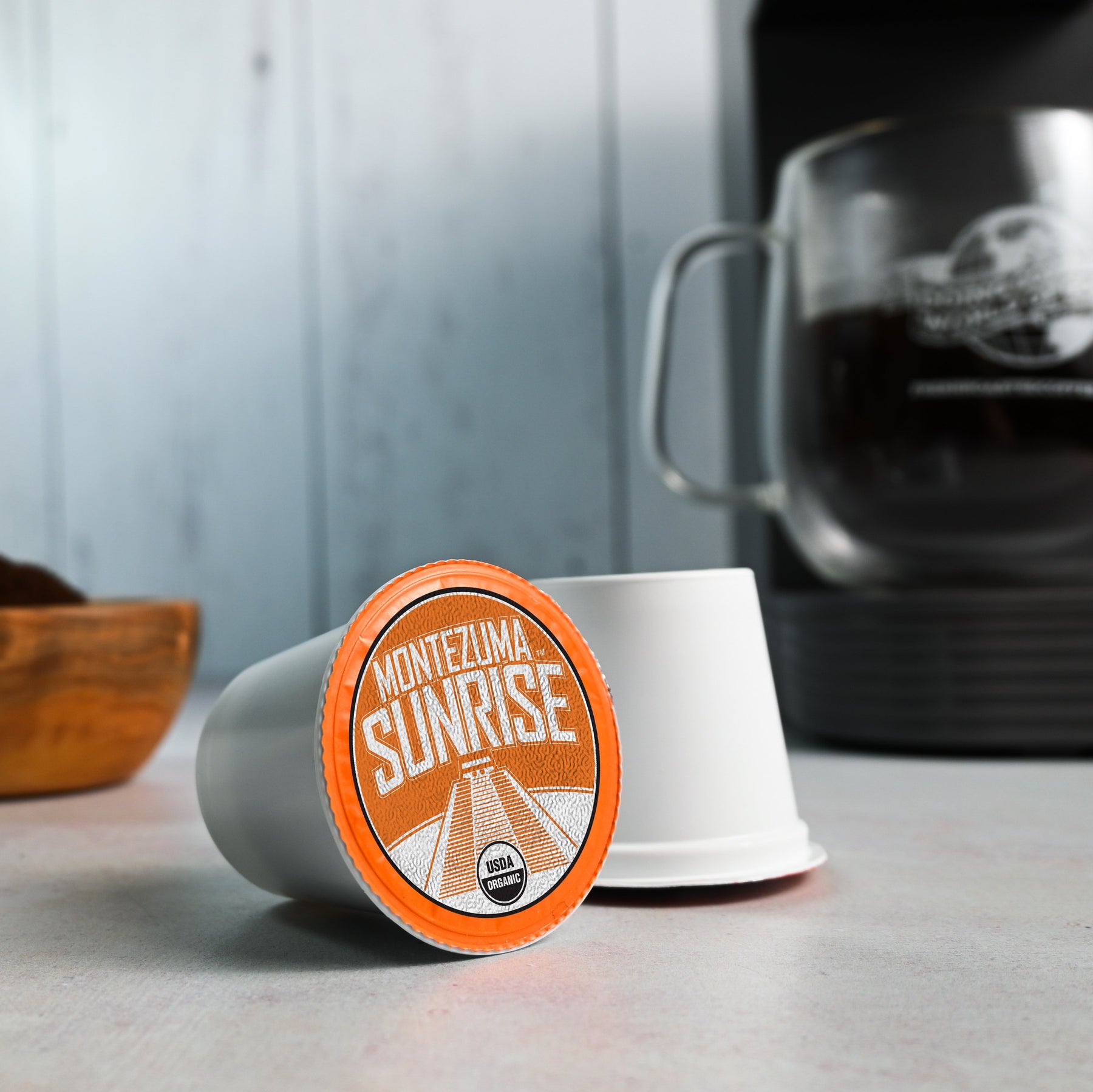 Montezuma Sunrise is a certified organic coffee with a medium roast and crisp finish. This ancient coffee blend has balanced notes of lemon wedge, pecan with a wonderfully warm and refreshing finish. Reign over this coffee blend, while you still can.