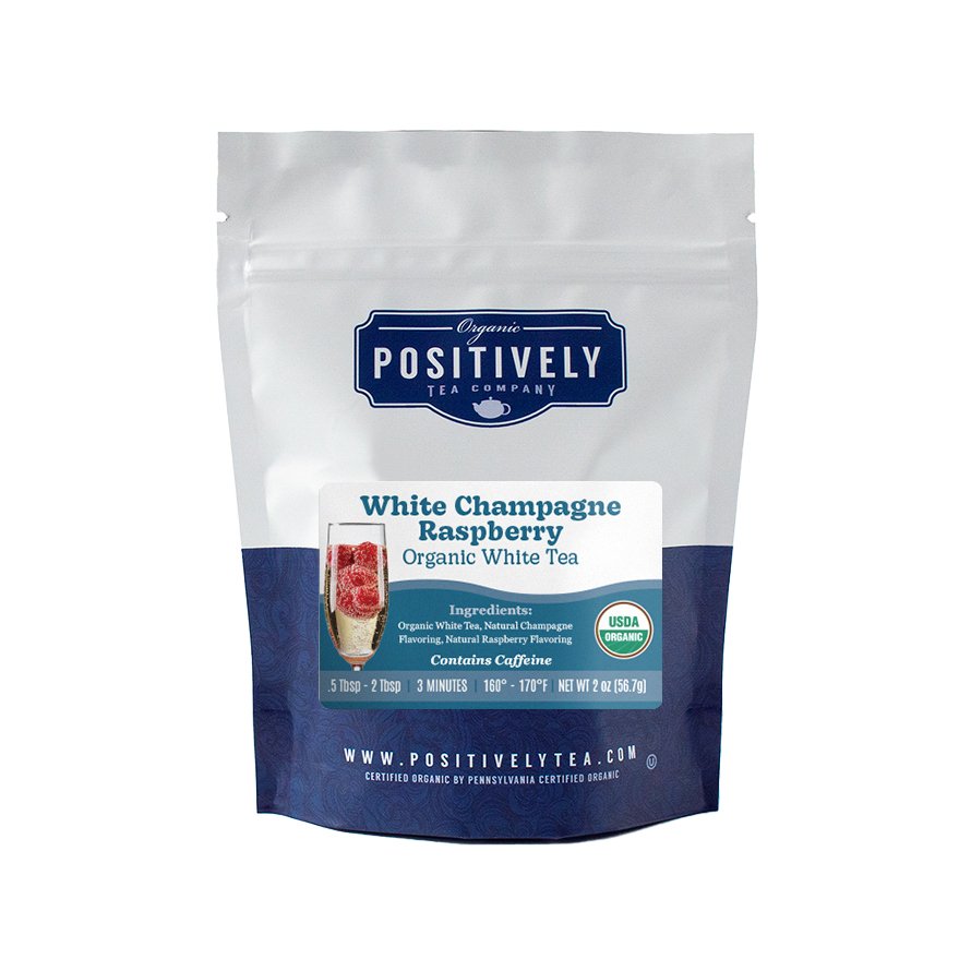 Our Organic White Champagne Raspberry White Tea is a luxurious blend of organic white tea, organic safflowers, natural champagne and red raspberry flavoring. A full-bodied infusion of this organic white tea boasts light and sweet flavors with subtle notes of bubbling champagne and bright, tart berries.