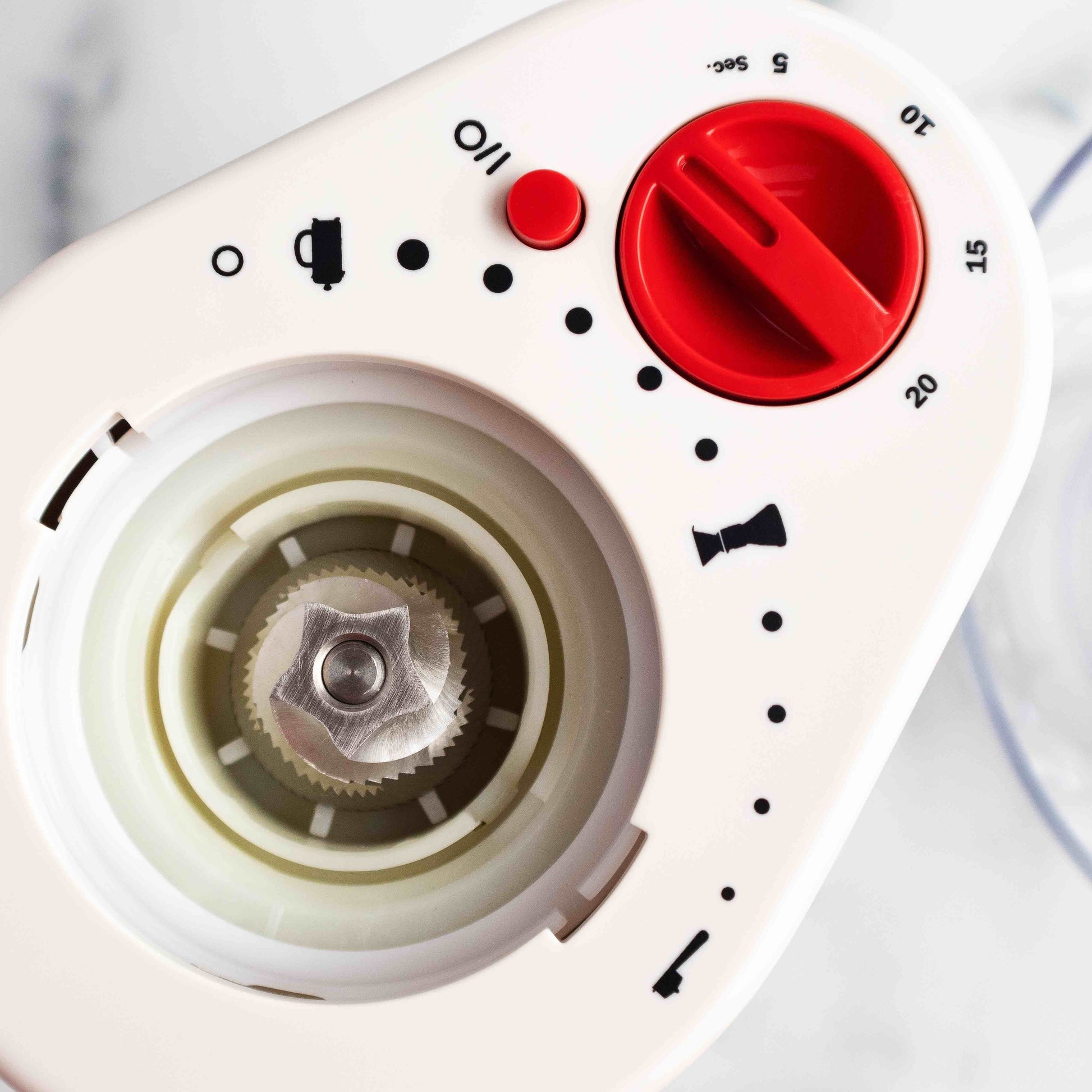 This model has over 14 variable grind settings that can be selected by simply adjusting the position of the bean hopper container at the top of the grinder. After a selection is made, set the timer, turn on the power and start the grind by pressing the operation button. Grinding will stop automatically once the time is up.