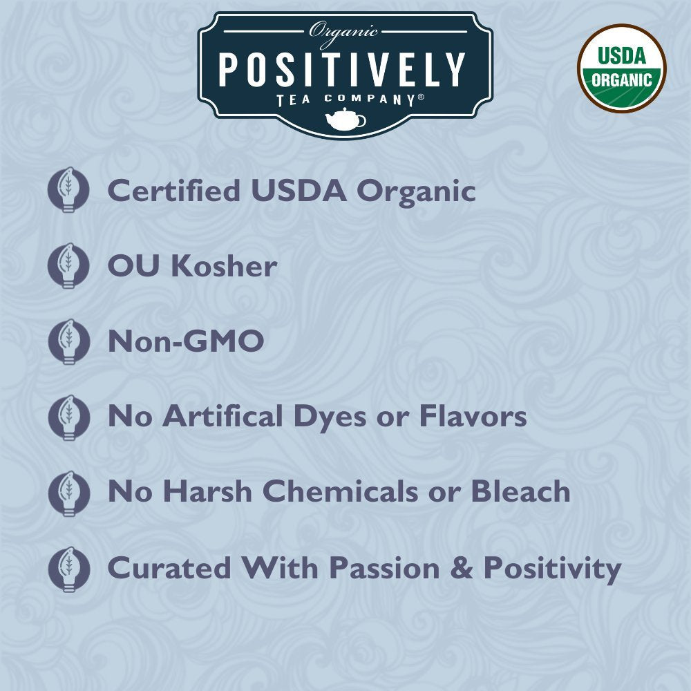 Here at Positively Tea, we’re curating the world’s most positive tea experience. We believe that high-quality tea products promote overall health and well-being. Tea is meant to be enjoyed, and the process, brewing either loose-leaf or bagged tea, should be as health-conscious as possible. We’re proud to offer exclusively bleach and glue-free tea bags so that every Positively Tea customer can enjoy the natural flavors and benefits without the use of toxic glues and chemicals. Our entire product line is certified USDA organic and sourced with the utmost care so you always arrive at an outstanding cup of tea.