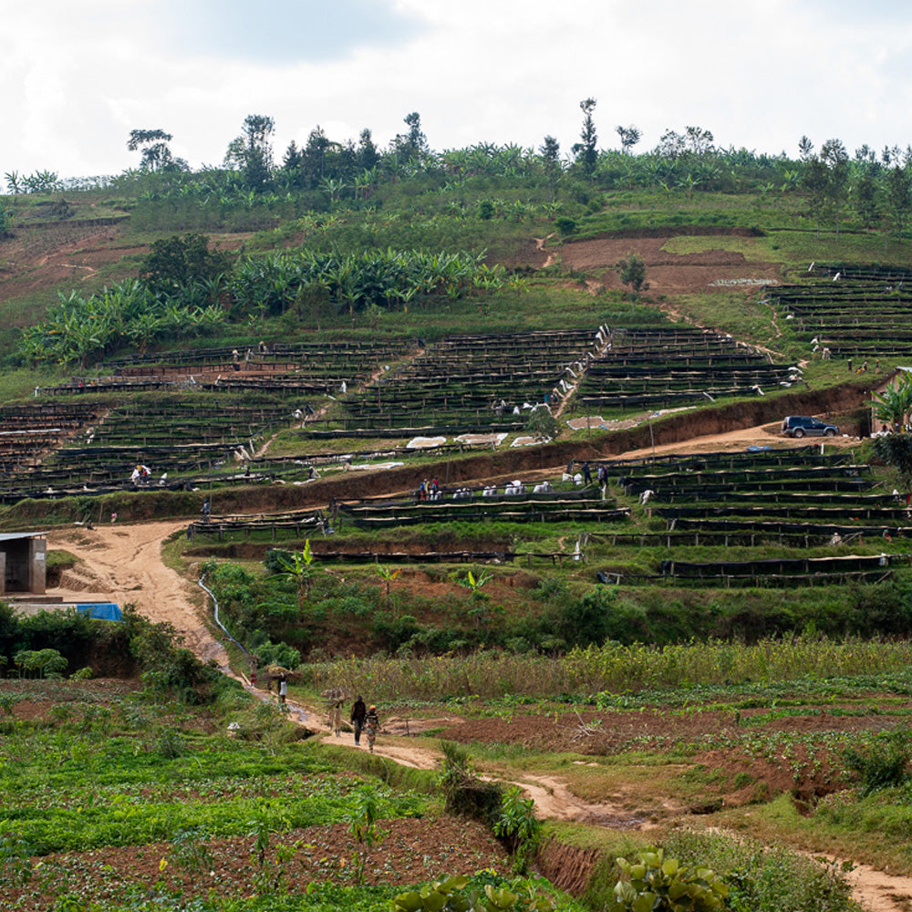 This natural lot is from the Izuba Washing Station in Burundi. Izuba, meaning "sun" in Kirundi, is located in Runinya, within the Kabarore Commune of Kayanza Province. The washing station is positioned near a river, providing a reliable and essential source of fresh water for coffee processing. Situated close to Kibira National Park, Izuba benefits from the region's favorable soil and climate as they create ideal conditions for high-quality coffee production.Izuba is surrounded by three hills—Kigeri, Ryamukona, and Mugoyi—which are the primary areas that collect and deliver coffee cherries to the washing station. Once the cherries are brought to Izuba, they undergo a thorough floating process, followed by extensive wet sorting. Their natural coffees require about 30 days of drying time